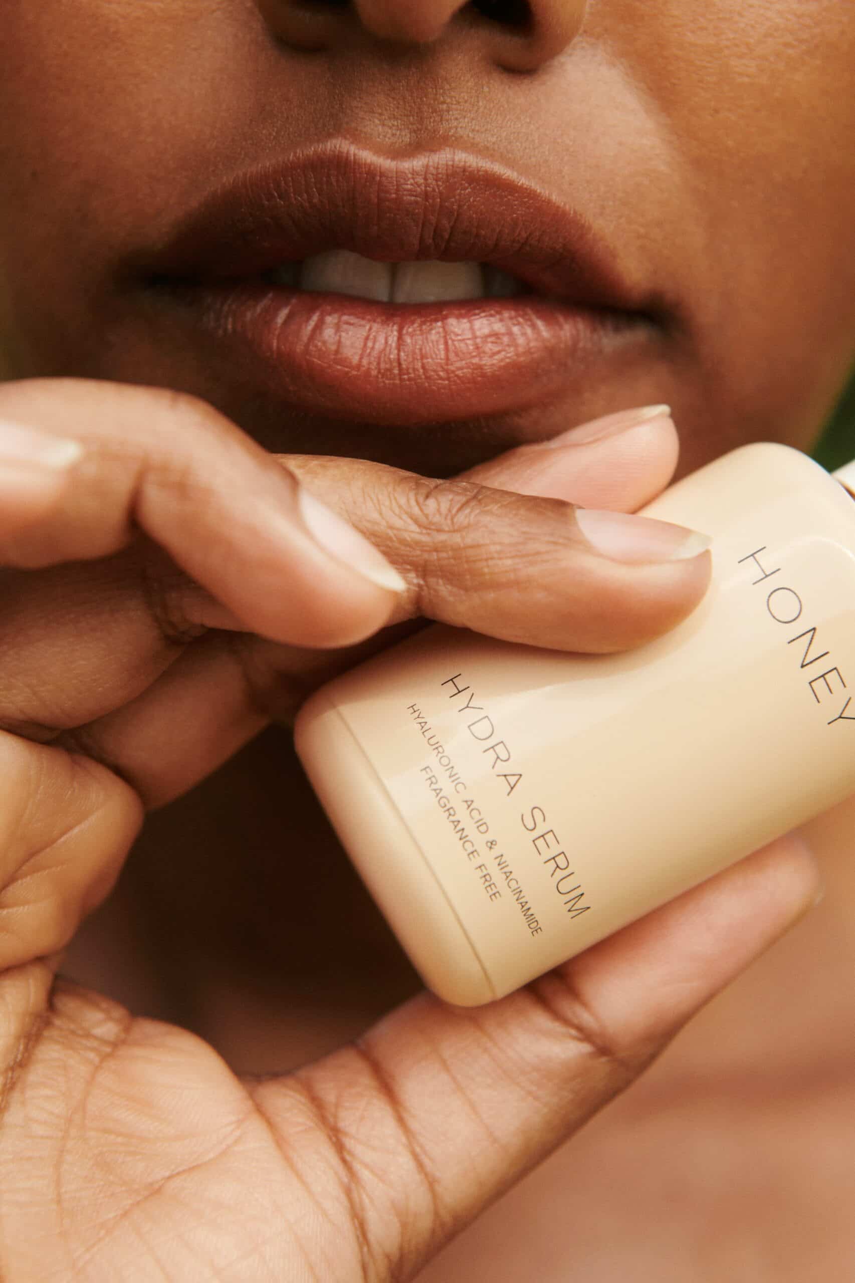Bildet til venstre viser Honeys nydelige Hydra Serum. Det danske merket Honey spesialiserer seg på milde og luksuriøse produkter til kvinner i alle livsfaser, inkludert gravide og ferske mødre. Honeys produkter får du på Heavenscent.