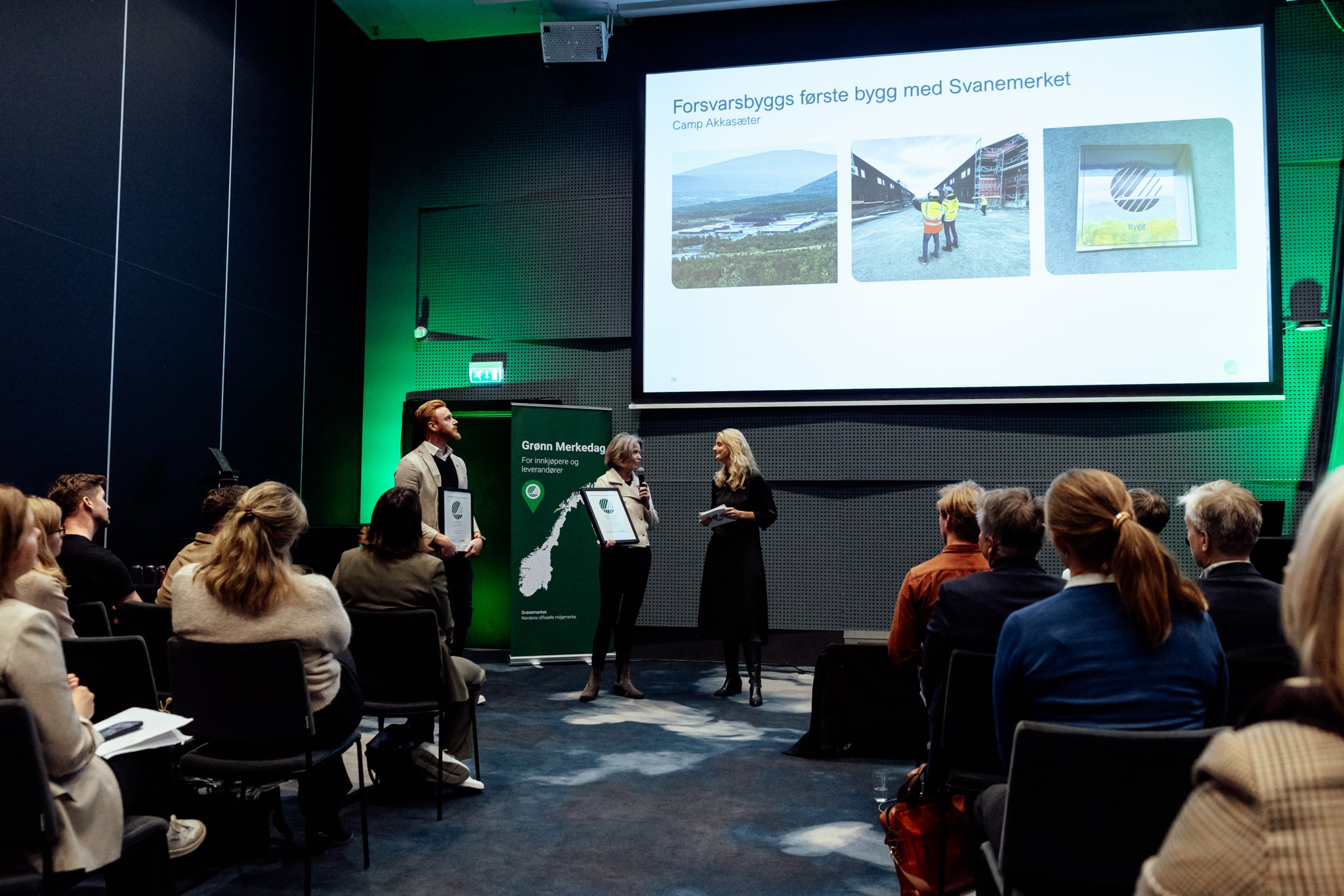 Det første prosjektet, forlegningsbyggene ved Camp Akkasæter i Troms, er allerede ferdig. Under Grønn Merkedag Trøndelag mottok Forsvarsbygg og entreprenør Skanska Husfabrikken Svanemerkets offisielle lisensbevis.
